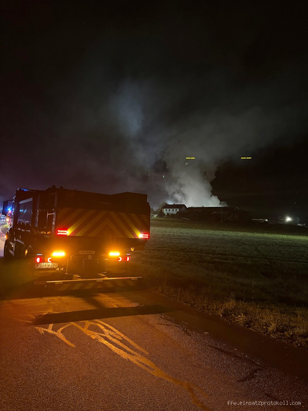 Heute Nacht wurden wir zusammen mit zahlreichen weiteren Einsatzkräften nach Emmering (Landkreis Ebersberg) zu einem Großbrand alarmiert. Da die Löschwasserversorgung an der Einsatzstelle schwierig war, kamen unsere beiden Wechselladerfahrzeuge mit Abrollbehältern (10 m und 12 m Wasser) zum Einsatz.