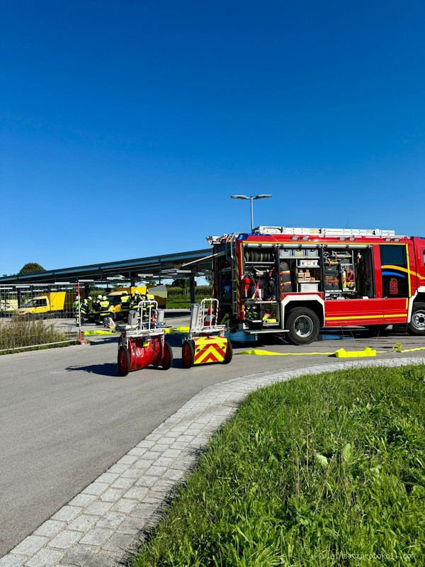 Am Vormittag, wurden wir zu einem Brennenden PKW alarmiert. Bei unserem Eintreffen, war der Brand bereits gelöscht. Wir kontrollierten das Fahrzeug mit der Wärmebildkamera und nahmen einige Sicherungsmaßnahmen an dem Elektrofahrzeug vor.