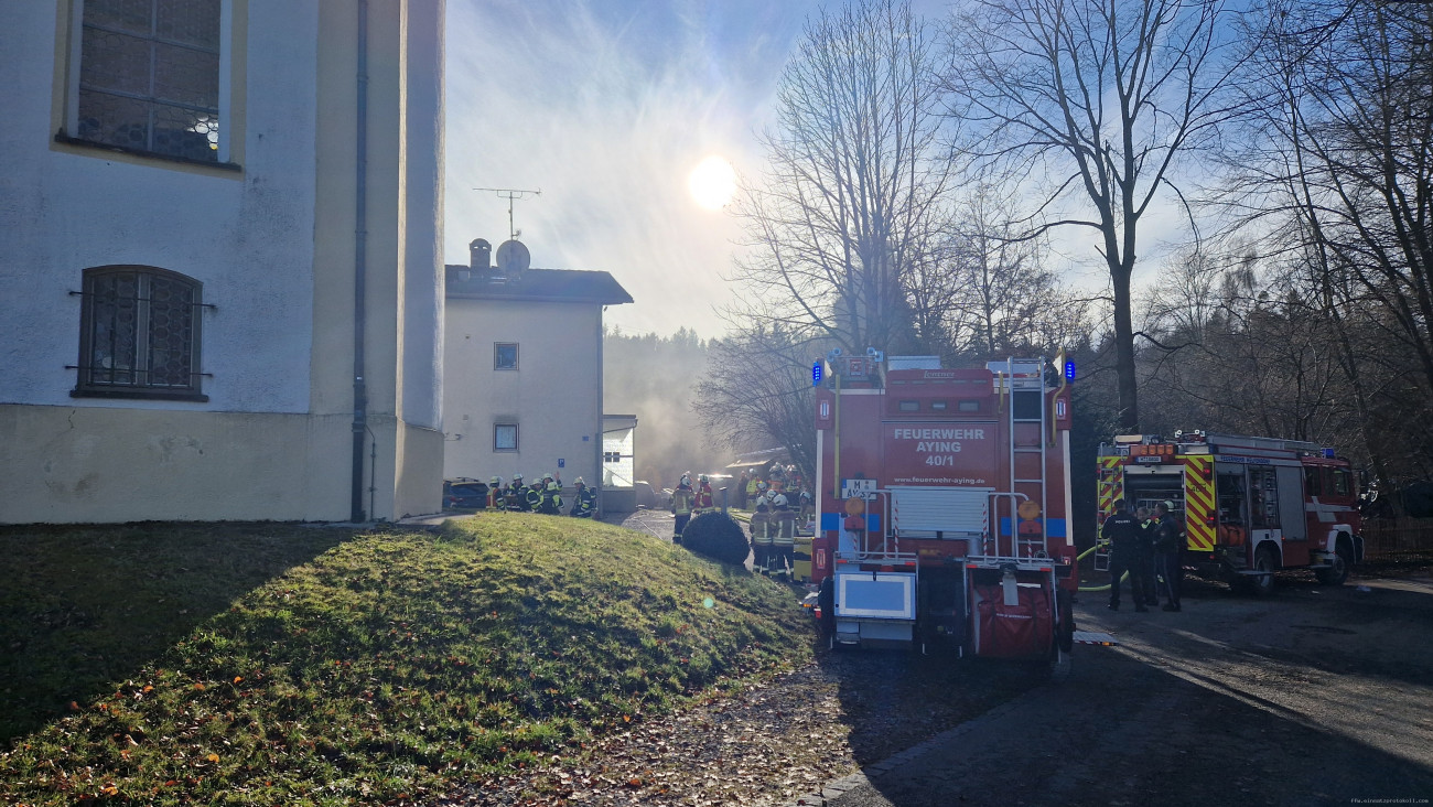 Heute Mittag wurden wir zur Unterstützung mit unserer Drehleiter nach Kleinhelfendorf alarmiert – gemeinsam mit der FF Helfendorf und der FF Aying. Bereits während des Ausrückens wurde zusätzlich unser HLF nachgefordert.